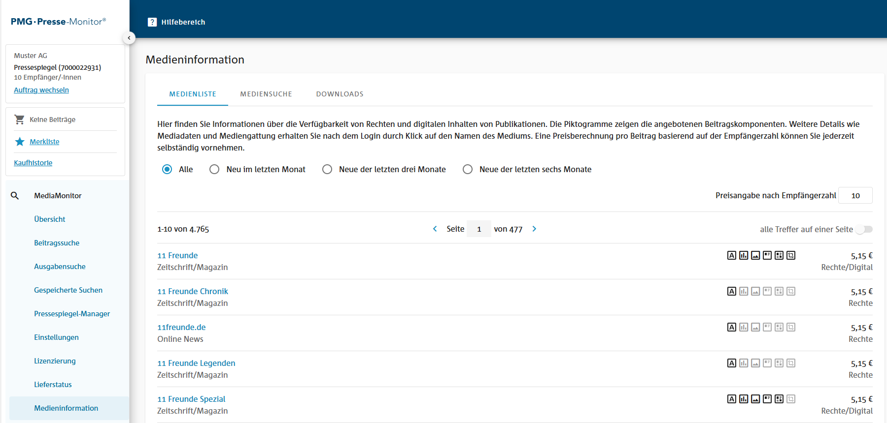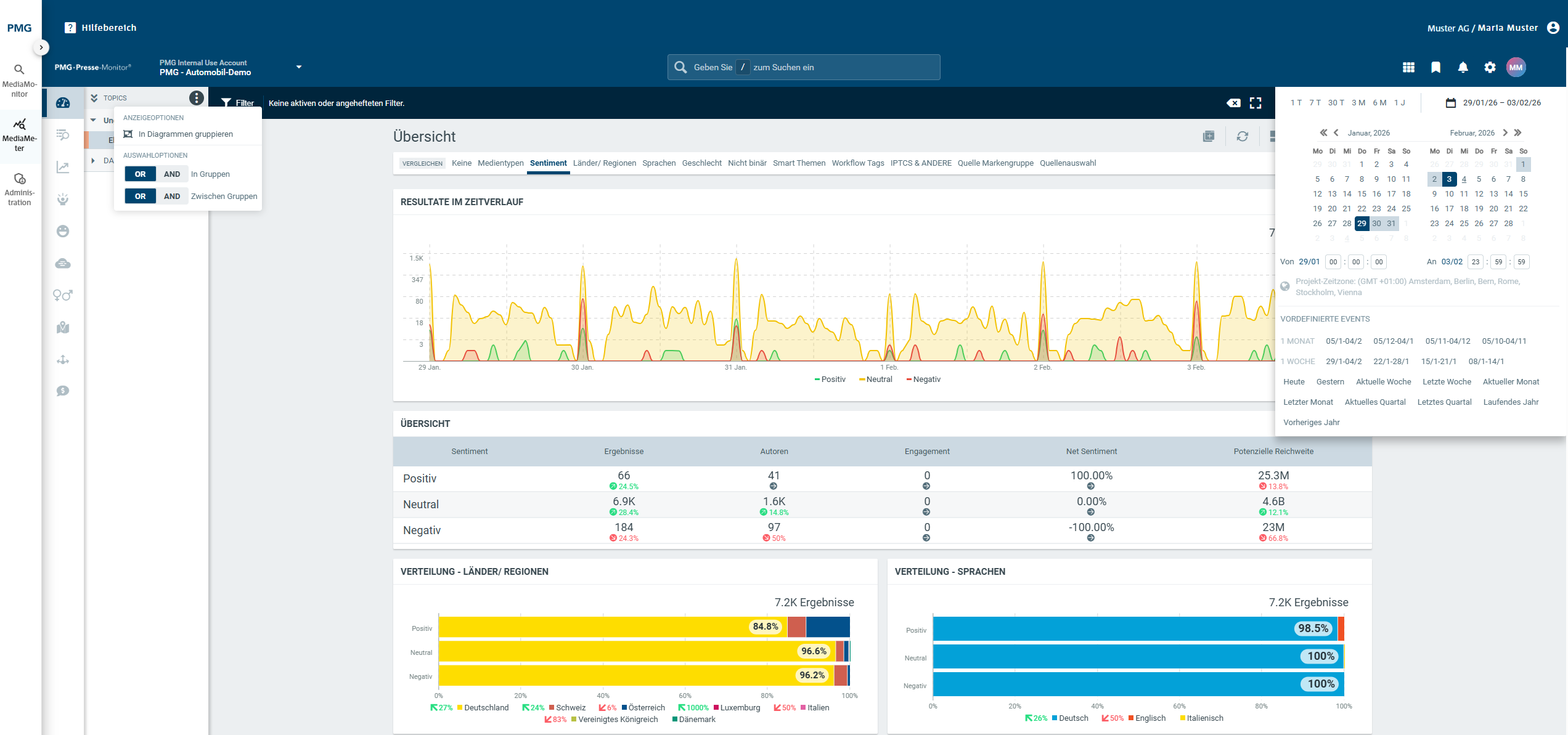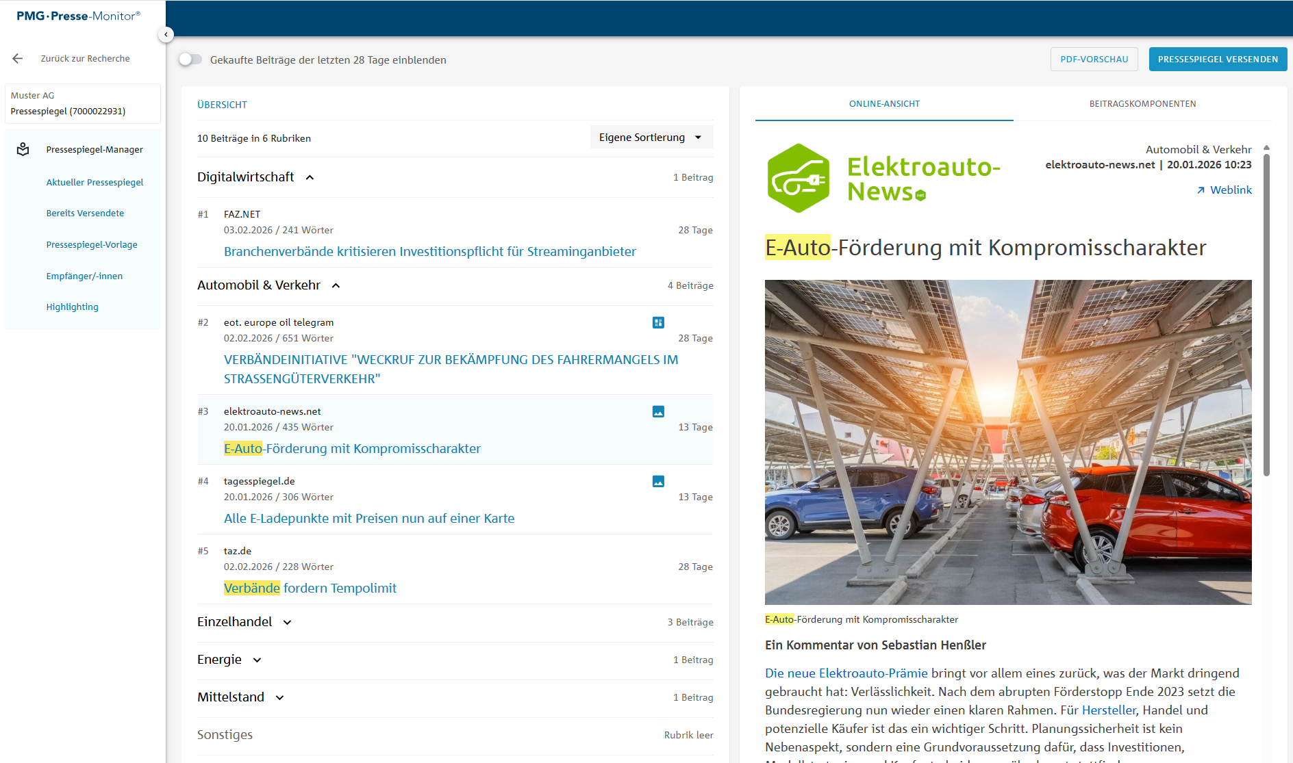 Über den PMG MediaHub erhalten Sie Zugriff auf die größte tagesaktuelle Pressedatenbank im deutschsprachigen Raum. Mit dem PMG MediaMonitor erstellen Sie Ihre Medienbeobachtung und Pressespiegel selbstständig, digital und passgenau – ohne aufwendige Dienstleisterprozesse. Sie schonen Ihr Budget und gewinnen jeden Morgen wertvolle Zeit – dank automatisierter Recherchen und Alerts.