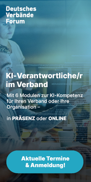 Wir – das Deutsche Verbände Forum – bieten speziell für Verbände und ähnliche Organisationen den Lehrgang „KI-Veranantwortliche/r im Verband“ an – online oder in Präsenz.
