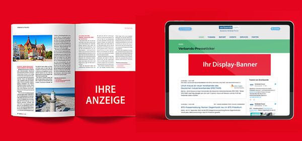 Ihre Anzeige im Fachmagazin Verbändereport und Ihr 4-wöchiges Display-Banner auf verbaende.com